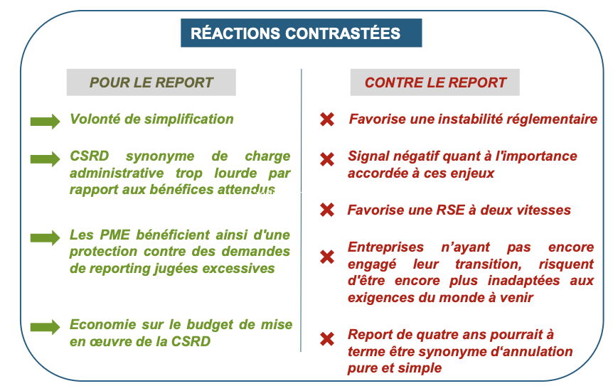 En mars 2025, le Sénat a adopté un amendement reportant de 4 ans la directive CSRD. L’objectif de ce report serait de permettre aux entreprises concernées de mieux se préparer. Si ce report semble être une bonne nouvelle et un gage de simplicité, il ne fait pas l’unanimité dans le secteur.