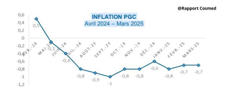 Au sein du marchés français, les prix moyens des PGC (produits de grande consommation) cosmétiques enregistrent une baisse depuis mai 2024. Ci contre, un graphique montrant la désinflation